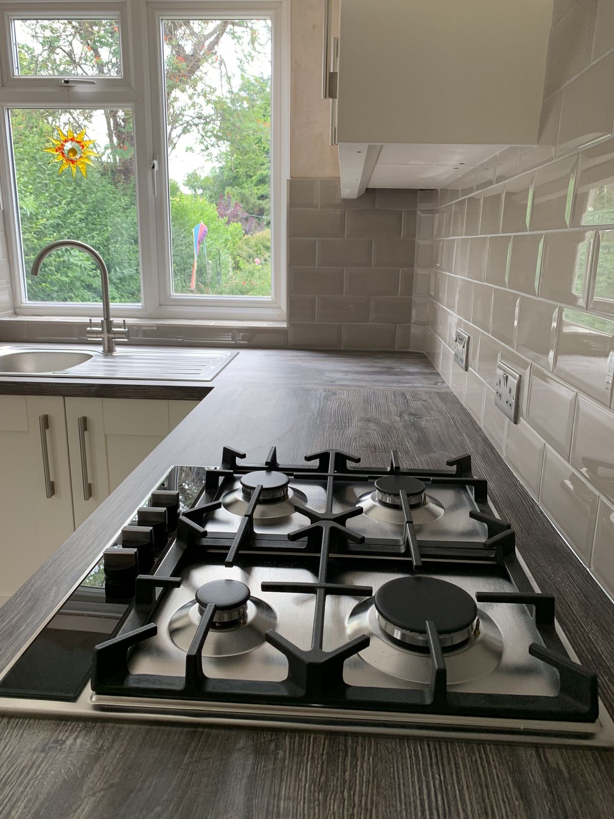 เตาแก๊สแบบฝังหน้าท็อปกระจกเซรามิก จะมีพื้นผิวหน้าท็อปเป็นกระจกเซรามิกเรียบสนิท ลักษณะหัวเตาจะเป็นแบบวงแหวนหรืออินฟราเรดโดยมีคุณสมบัติในการทำงานคือส่งความร้อนจากหัวเตาขึ้นมาบนภาชนะที่วางอยู่บนแผ่นกระจก มีภาพลักษณ์ที่หรูหรา ส่วนเตาแก๊สแบบฝังหน้าท็อปสเตนเลส พื้นผิวหน้าท็อปเป็นสเตนเลสขัดเงาหรือแบบด้านแล้วแต่การออกแบบ หัวเตาและขารองภาชนะอยู่บนพื้นผิวสเตนเลส ภาพลักษณ์ดูแข็งแกร่งทนทาน มีความเป็นมืออาชีพ