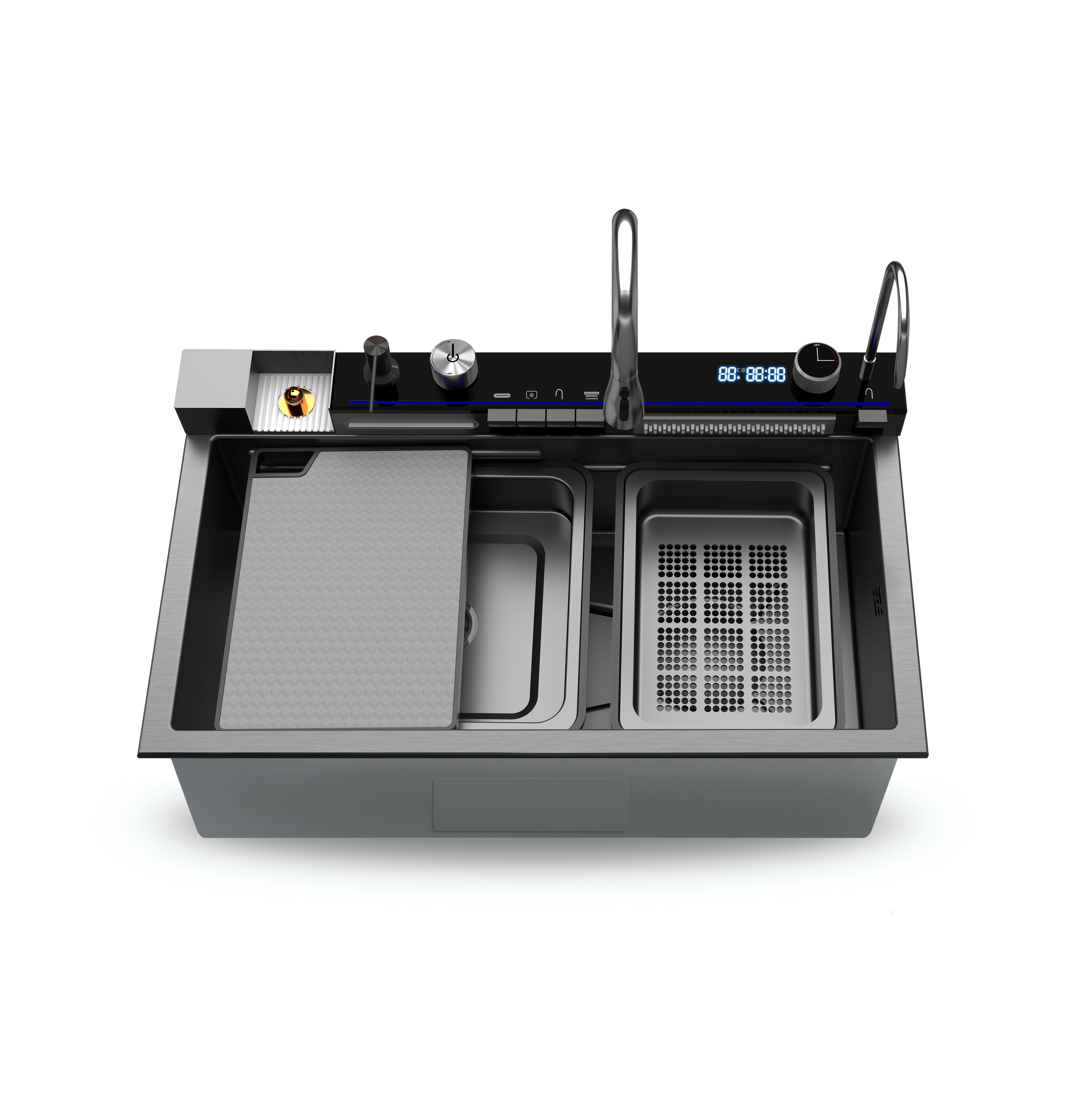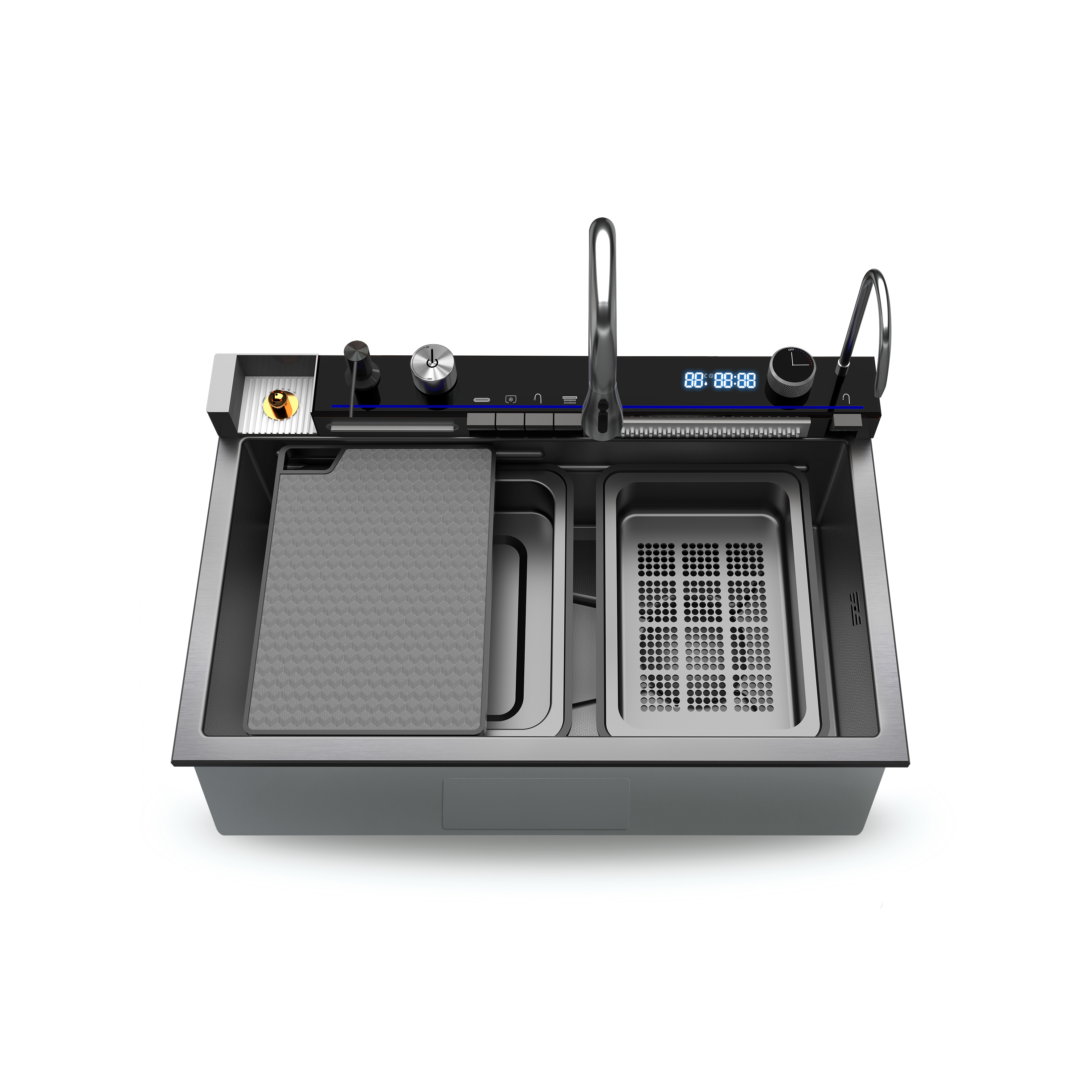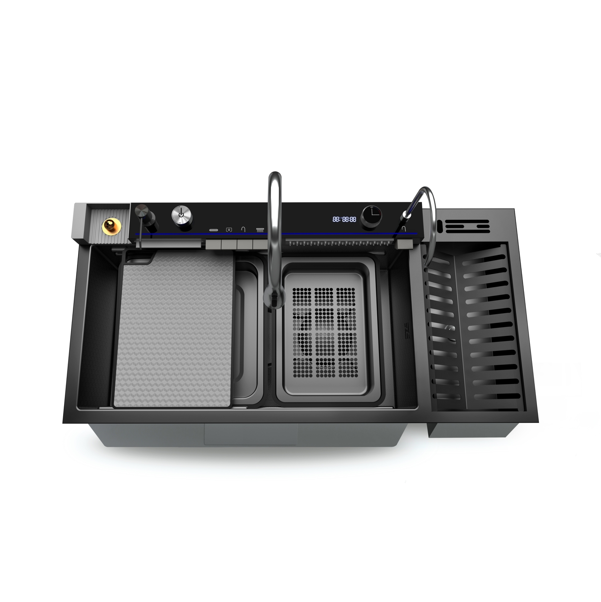 2.เทคโนโลยี Waterfall Flow นวัตกรรมแผงน้ำทำความสะอาดวัตถุดิบ ช่วยให้การล้างผักผลไม้เป็นเรื่องง่าย ทั้งยังช่วยถนอมผิววัตถุดิบได้เป็นอย่างดี มีก๊อกน้ำอัจฉริยะ วัสดุสเตนเลสพรีเมียมเกรดที่ควบคุมทิศทางน้ำได้แม่นยำในตัว